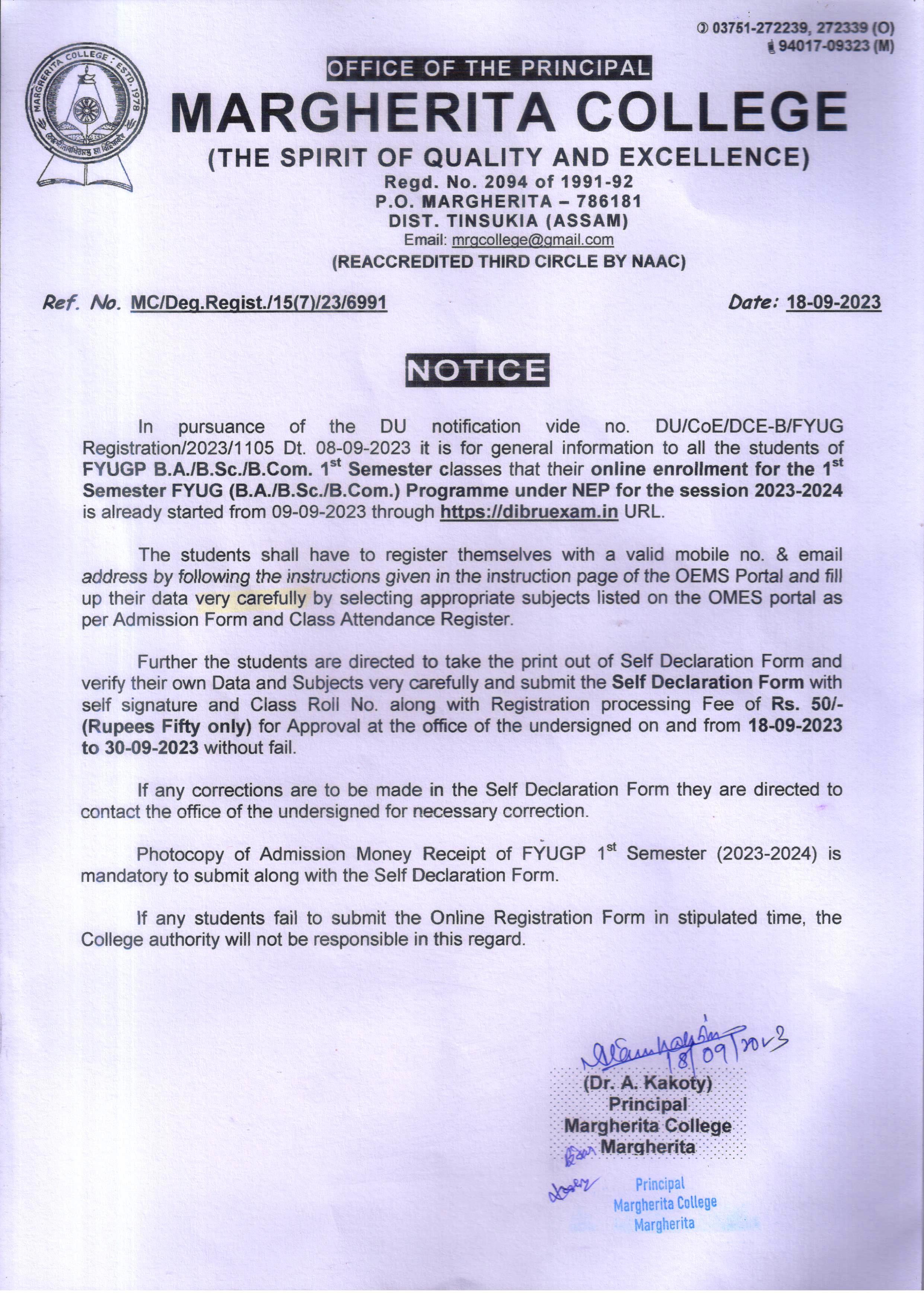 UG 1st Semester (FYUGP) Admission Notice View 2023-06-14